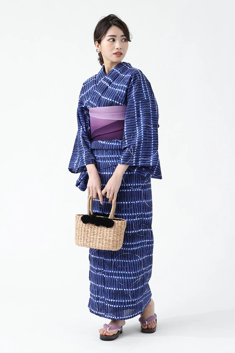 濃いネイビーに細かなっドットと、繊細なサークル模様が特徴的なこちらの浴衣。