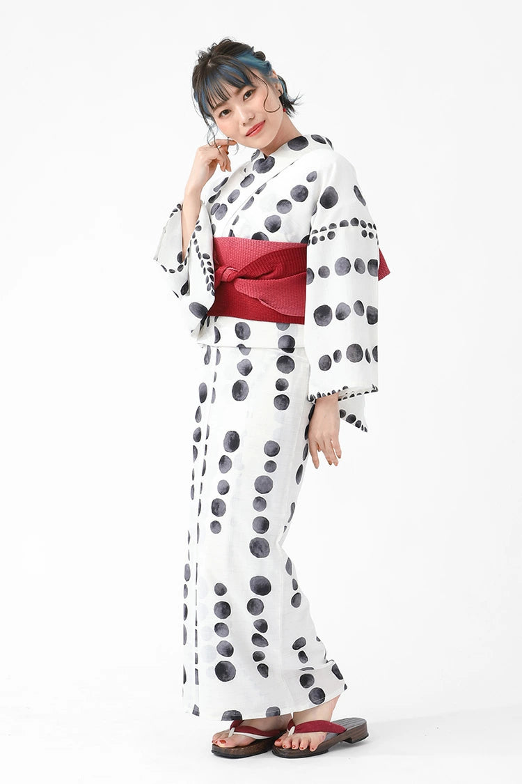 爽やかな白地に、墨で描いたようなドットが特徴的なこちらの浴衣。