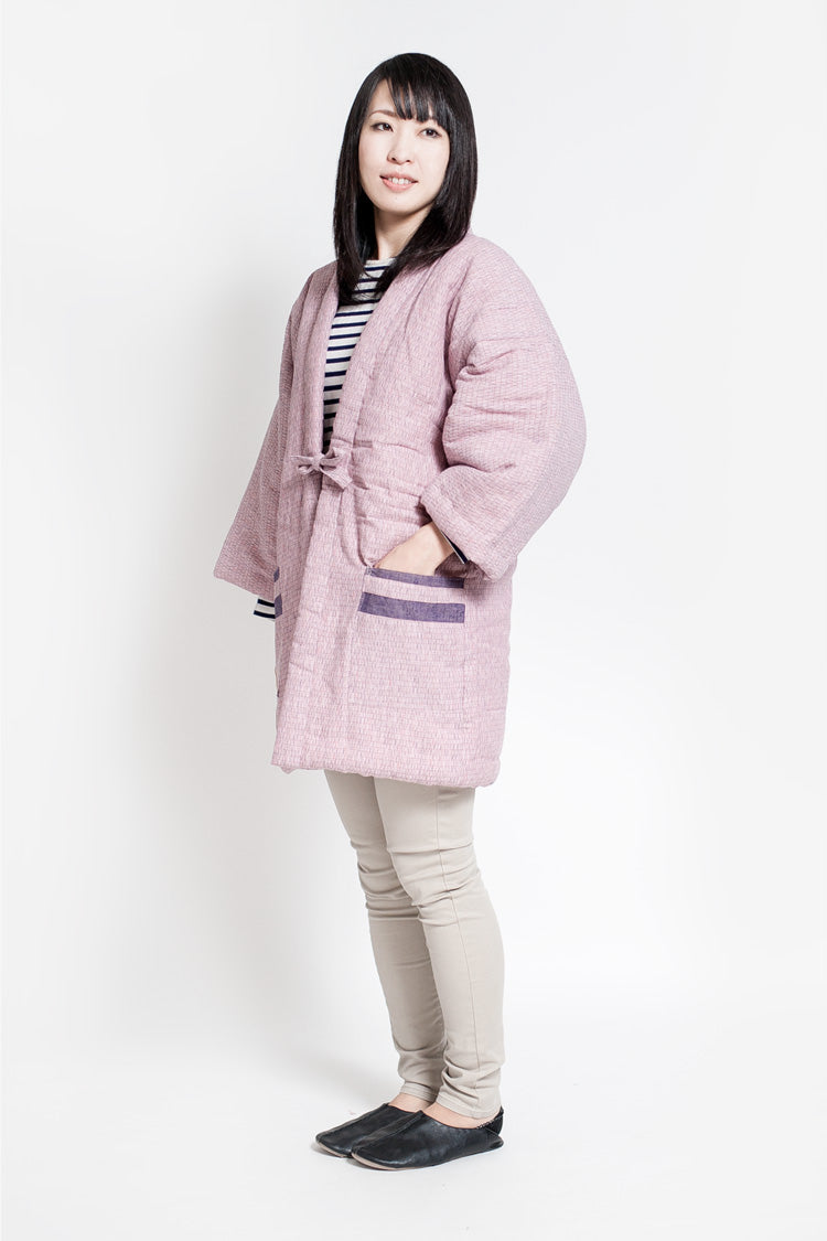 主張しすぎない、上品な明るい紫が印象的なはんてん。