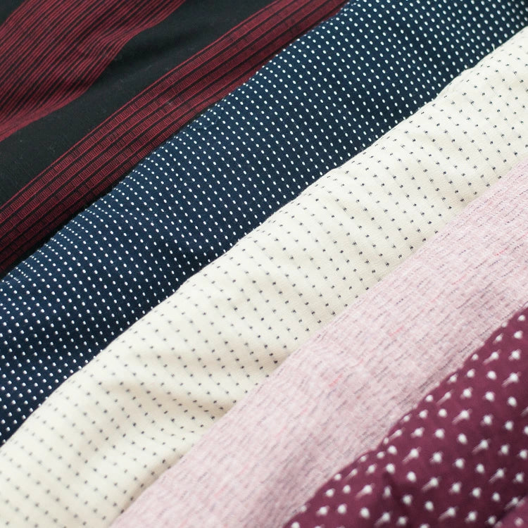 ドッドや縞、十字、井桁絣など、久留米織ならではの柄が楽しめるのも、久留米織はんてんの特徴です。