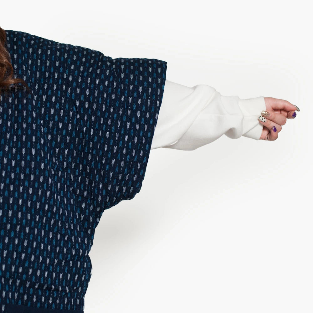 こちらは久留米織の袖なしはんてん。