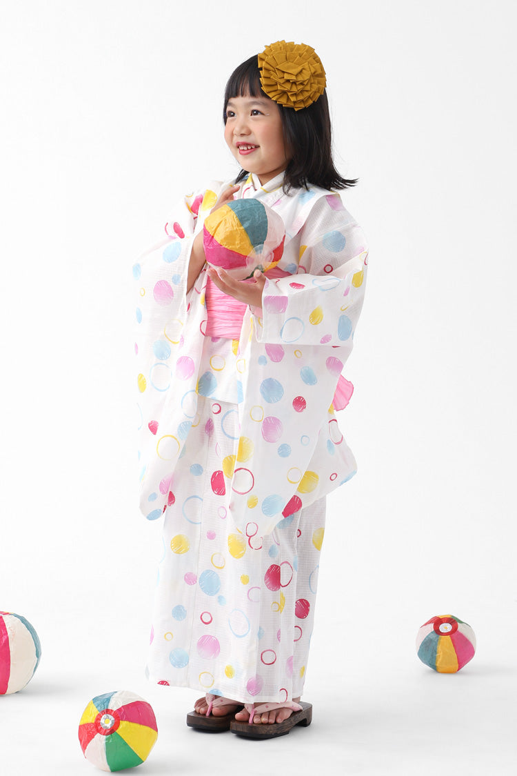 ▶キッズ浴衣 水玉パステル/モデル身長:120cm 着用サイズ:130cm