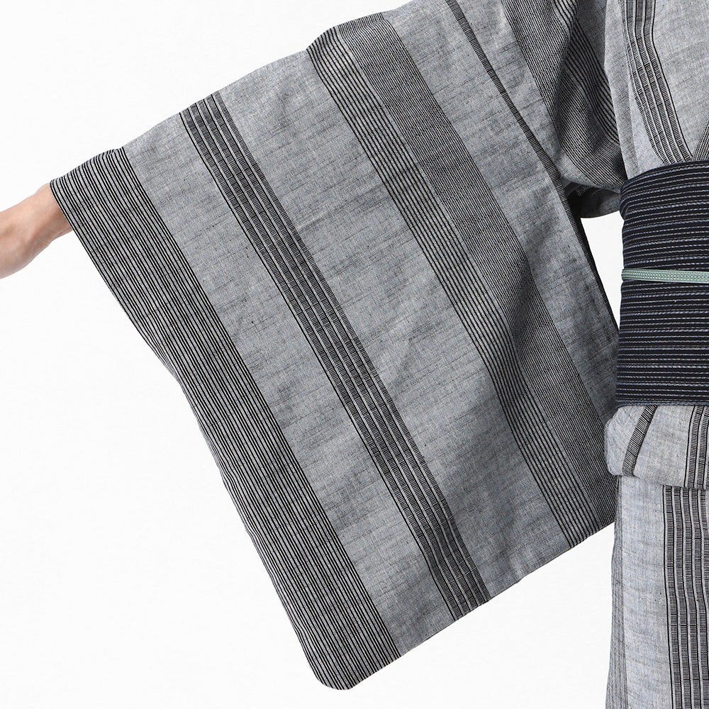 ▶BOTAN レディース 久留米織 木綿 着物 日本生地 縞 グレー