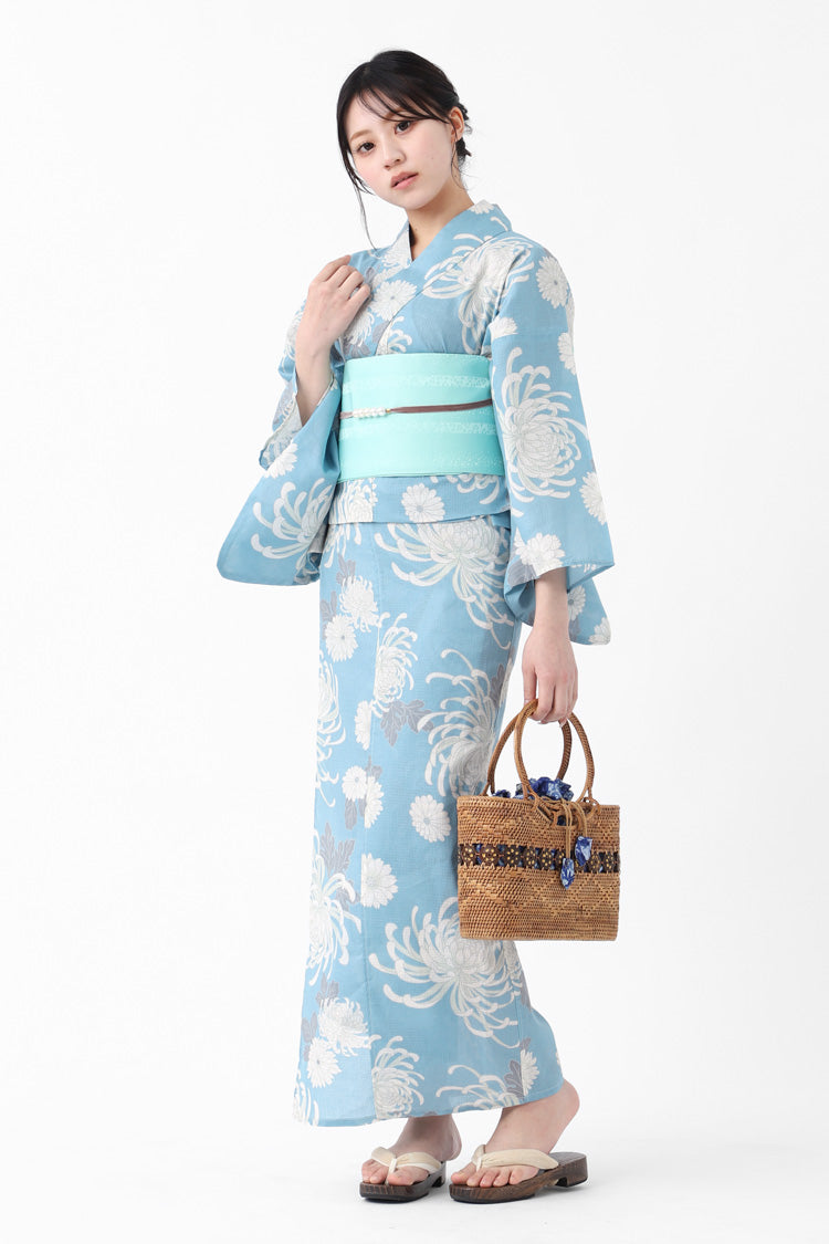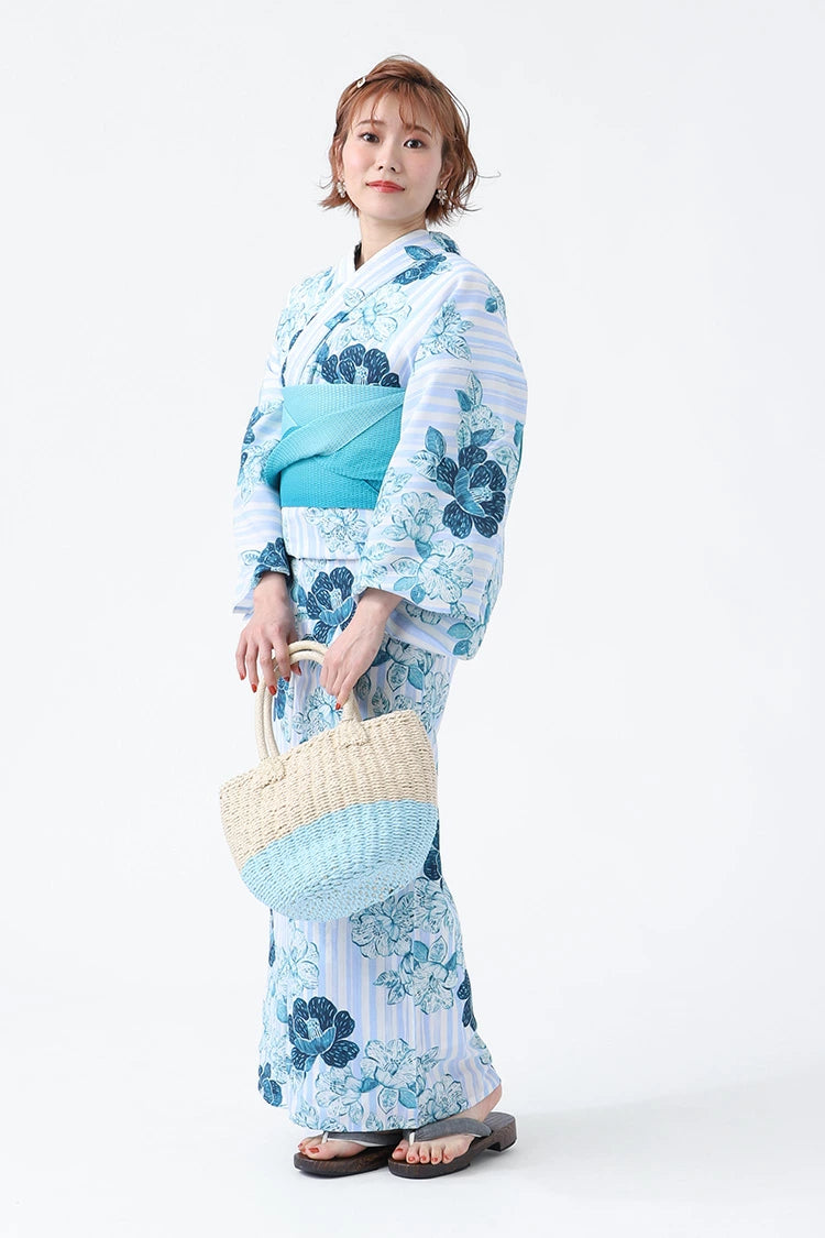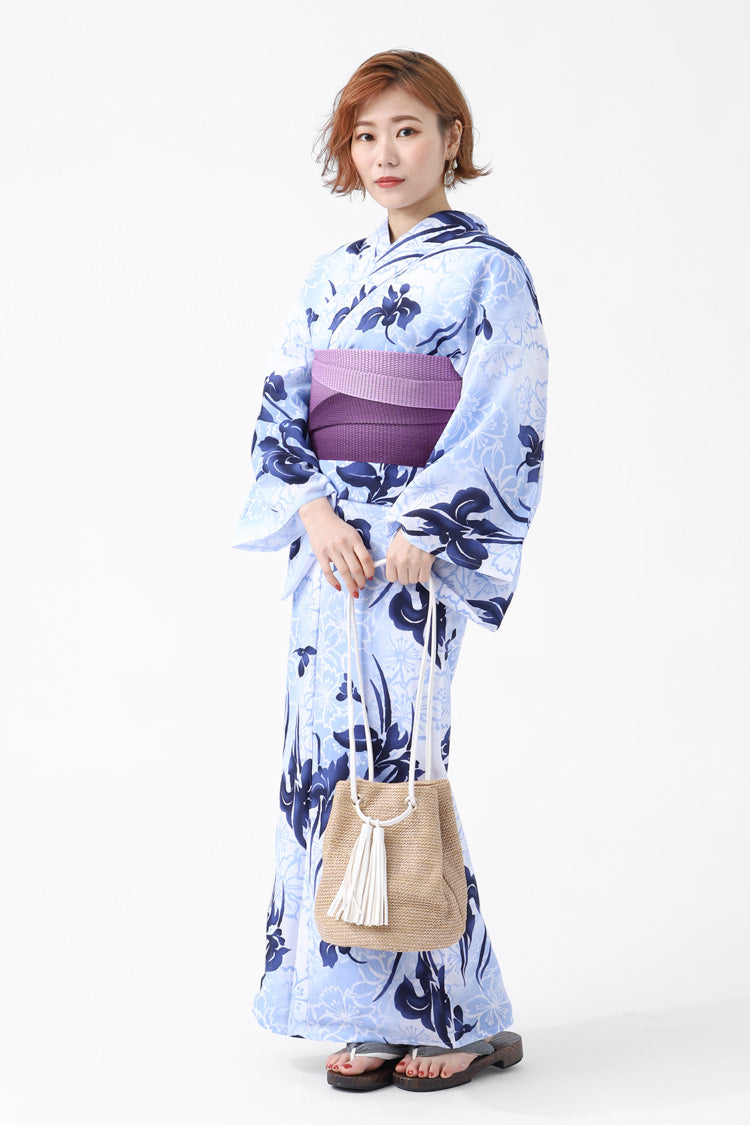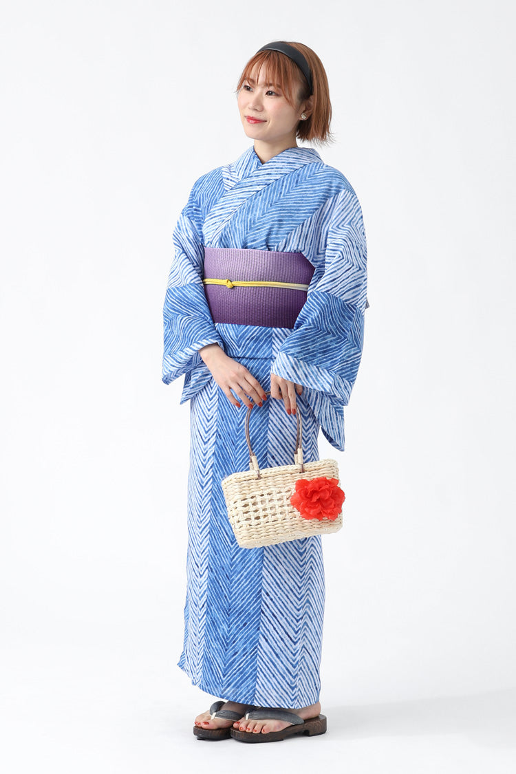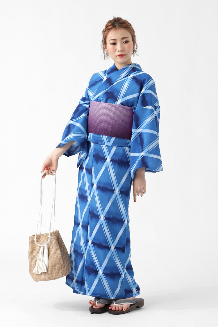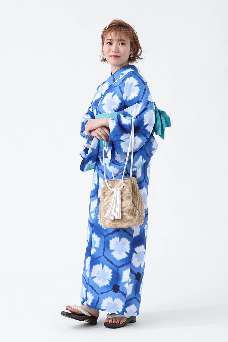 紺よりも少し鮮やかな色合いのブルー系浴衣。
