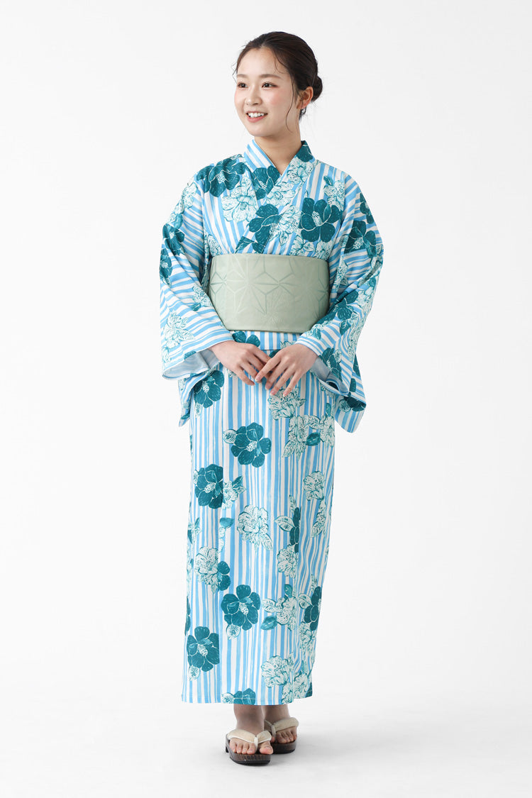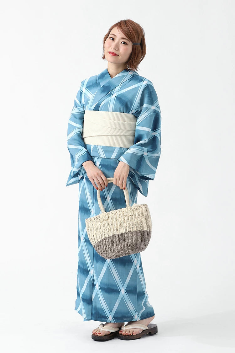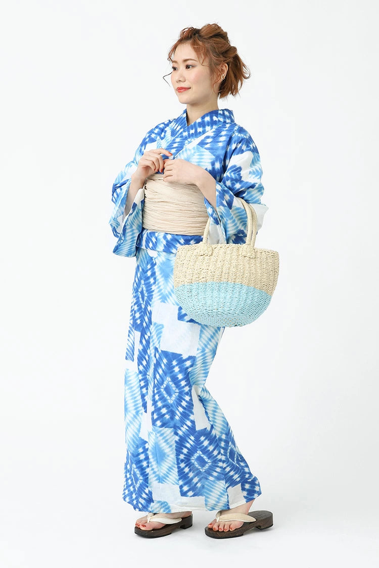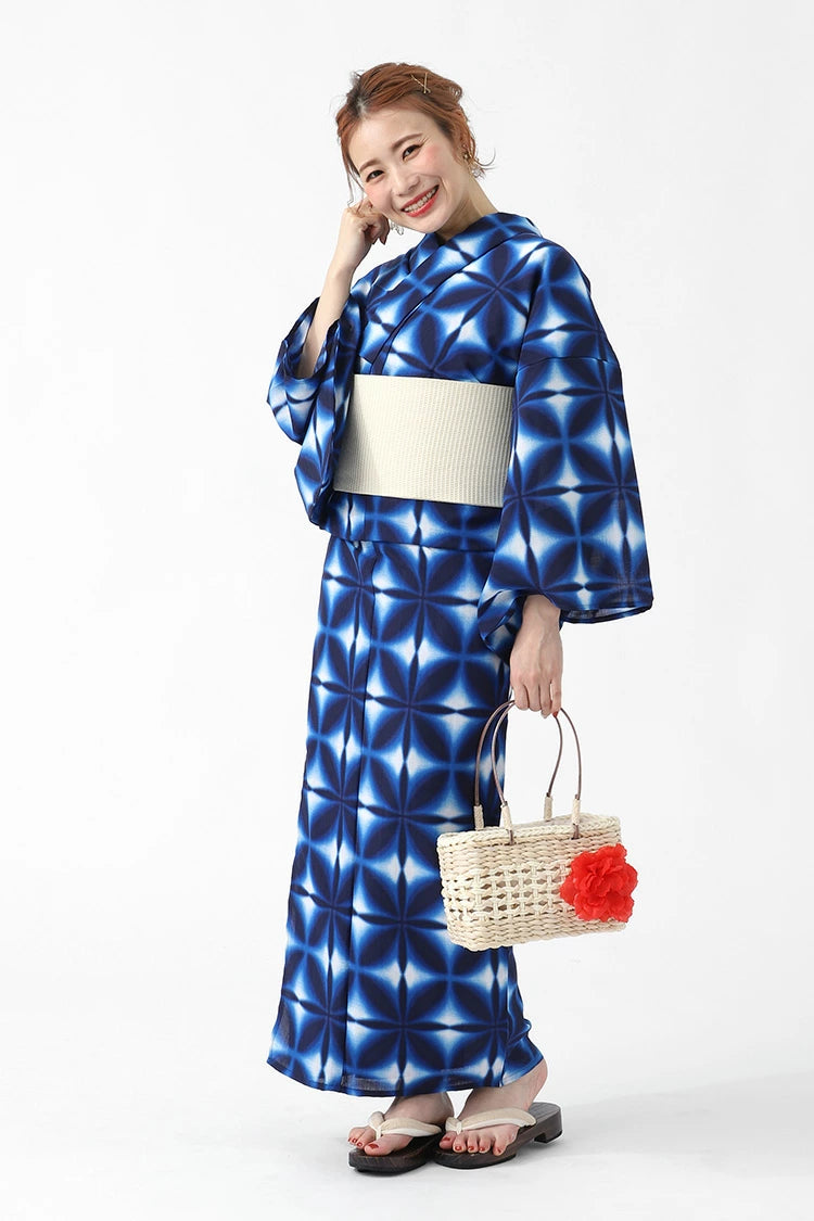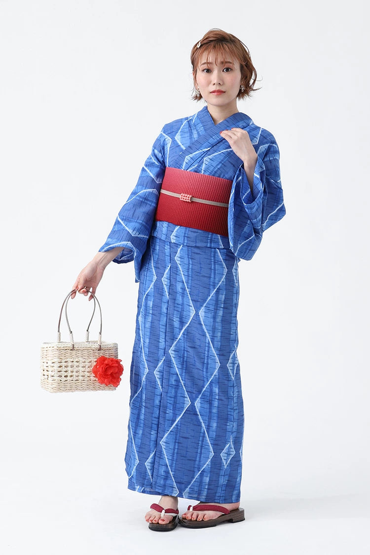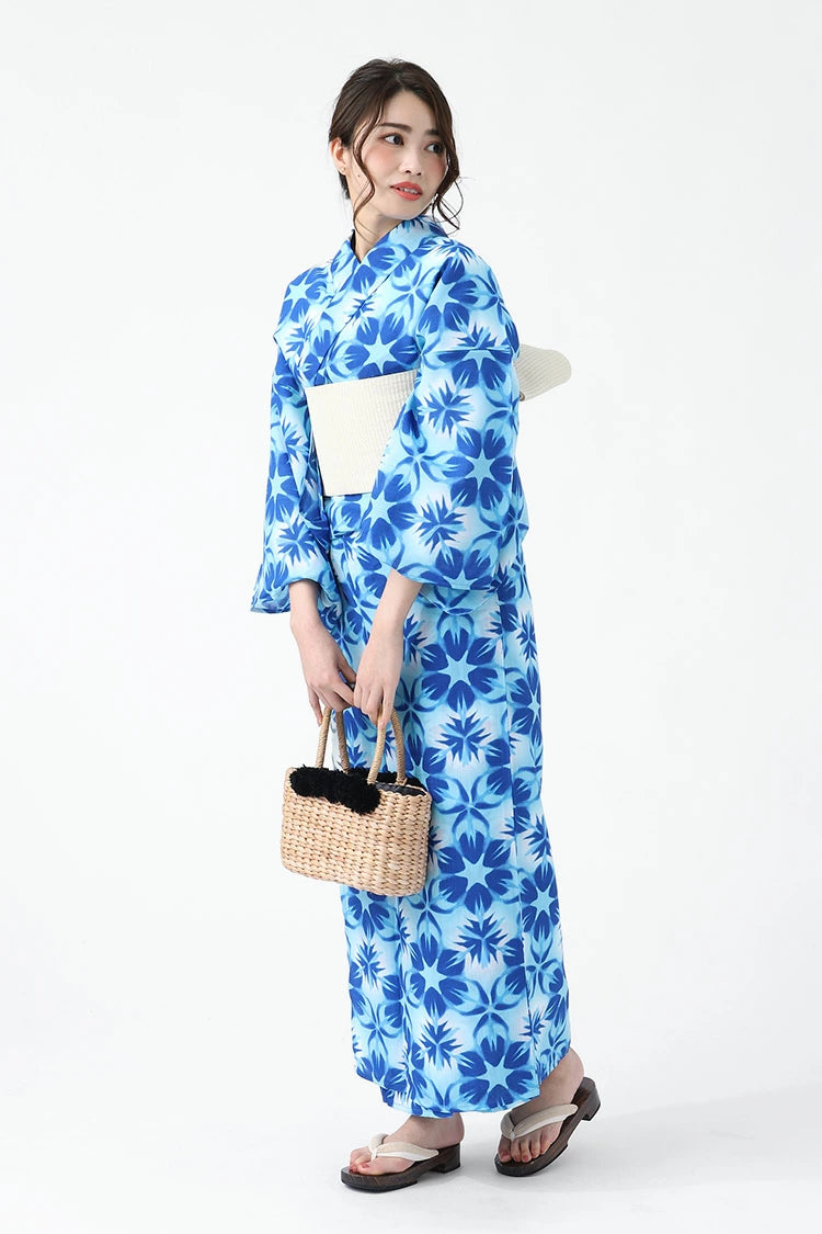 紺よりも少し鮮やかな色合いのブルー系浴衣。