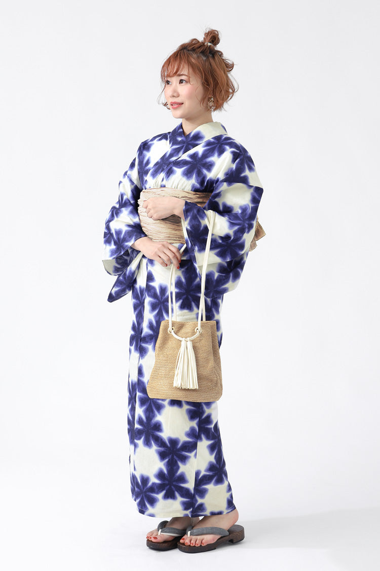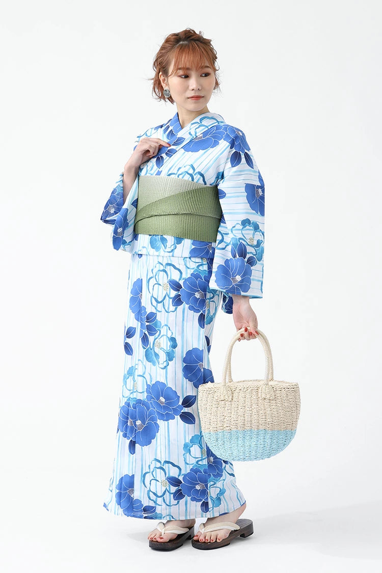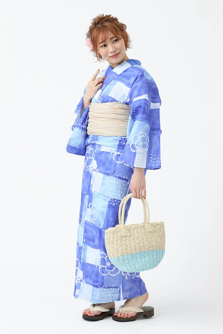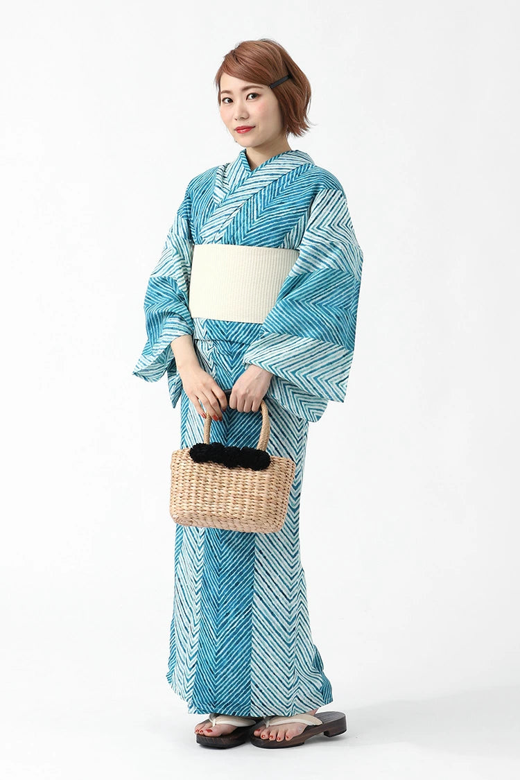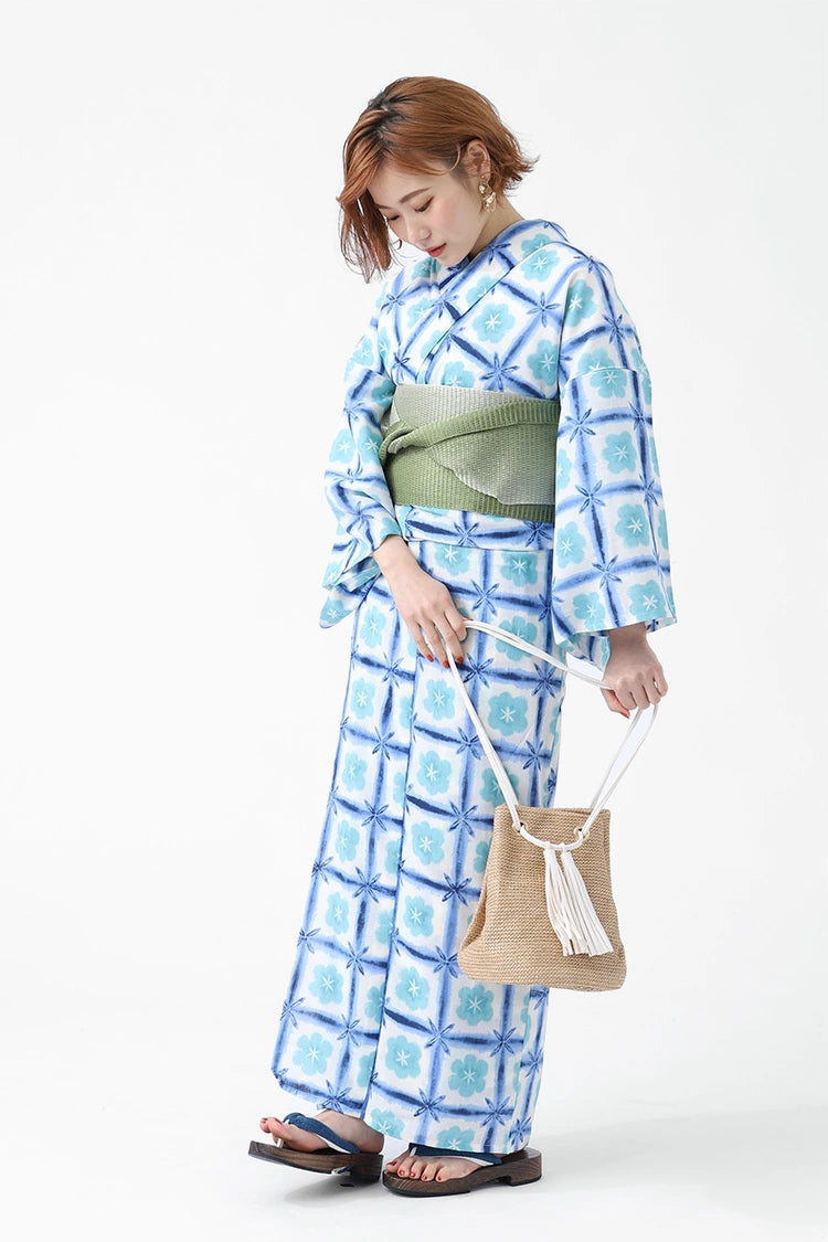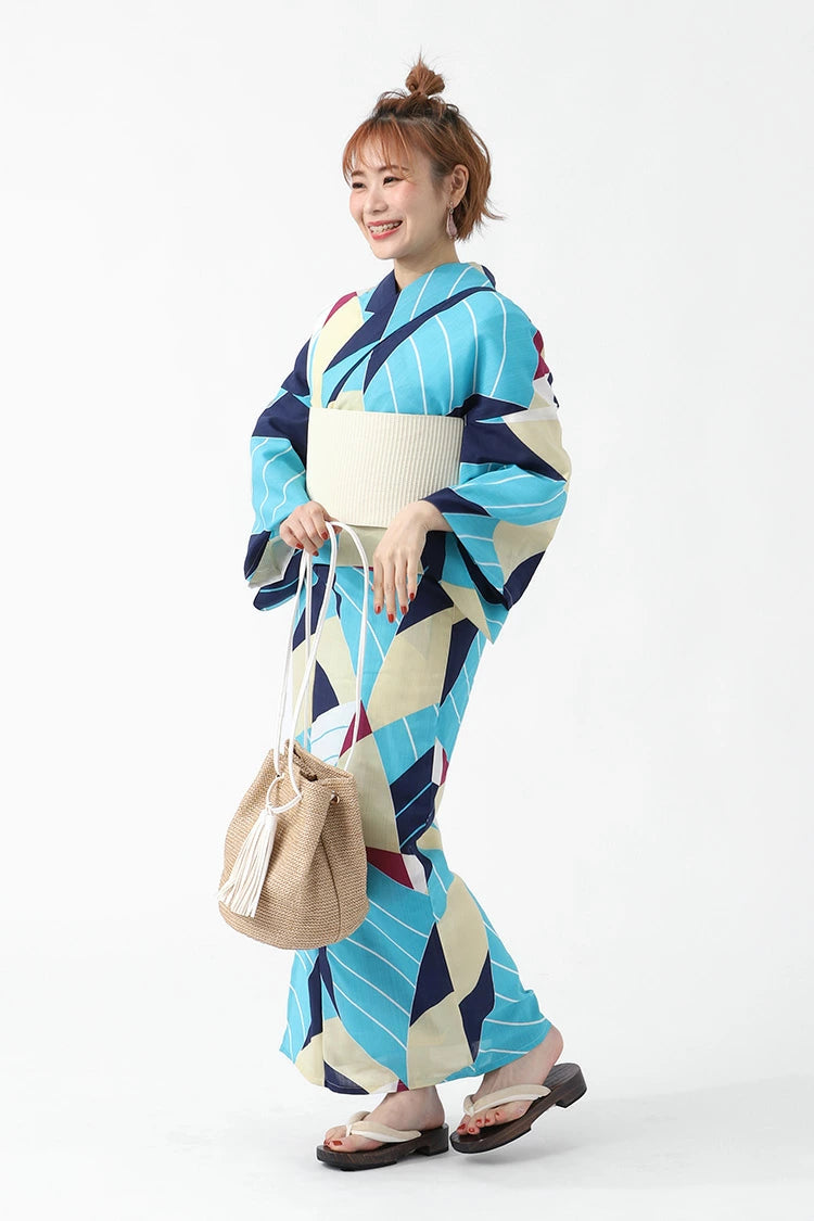 紺よりも少し鮮やかな色合いのブルー系浴衣。