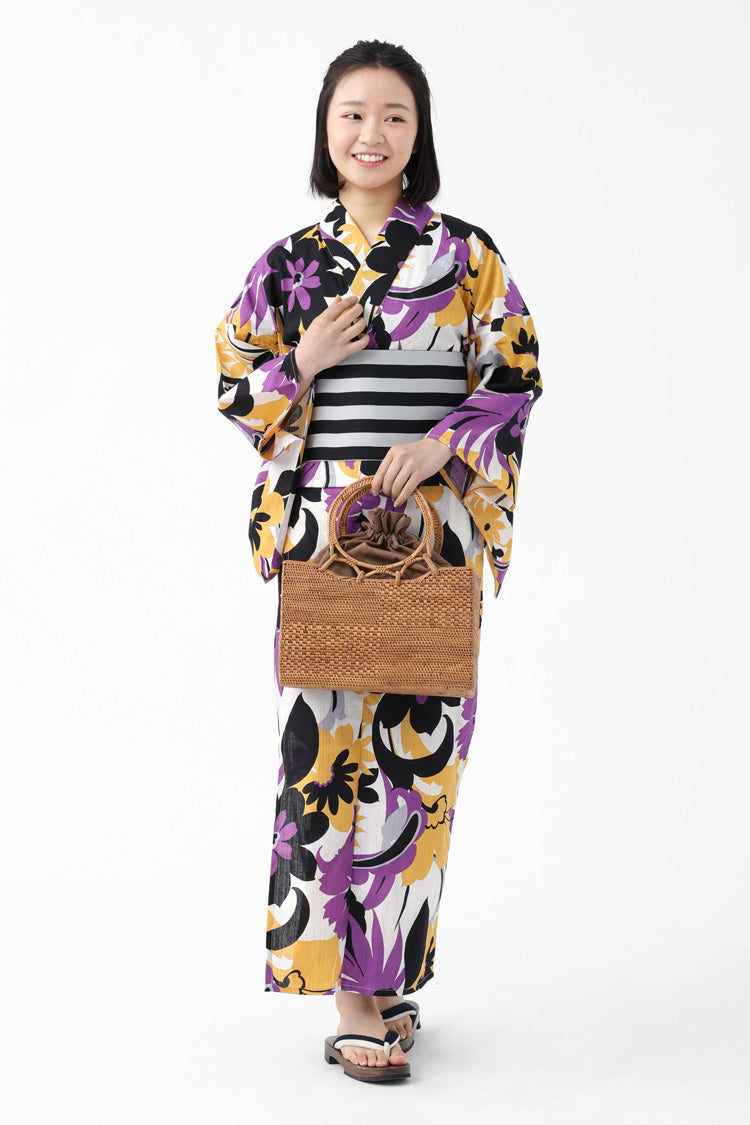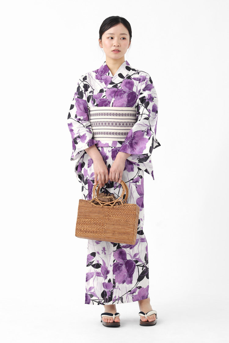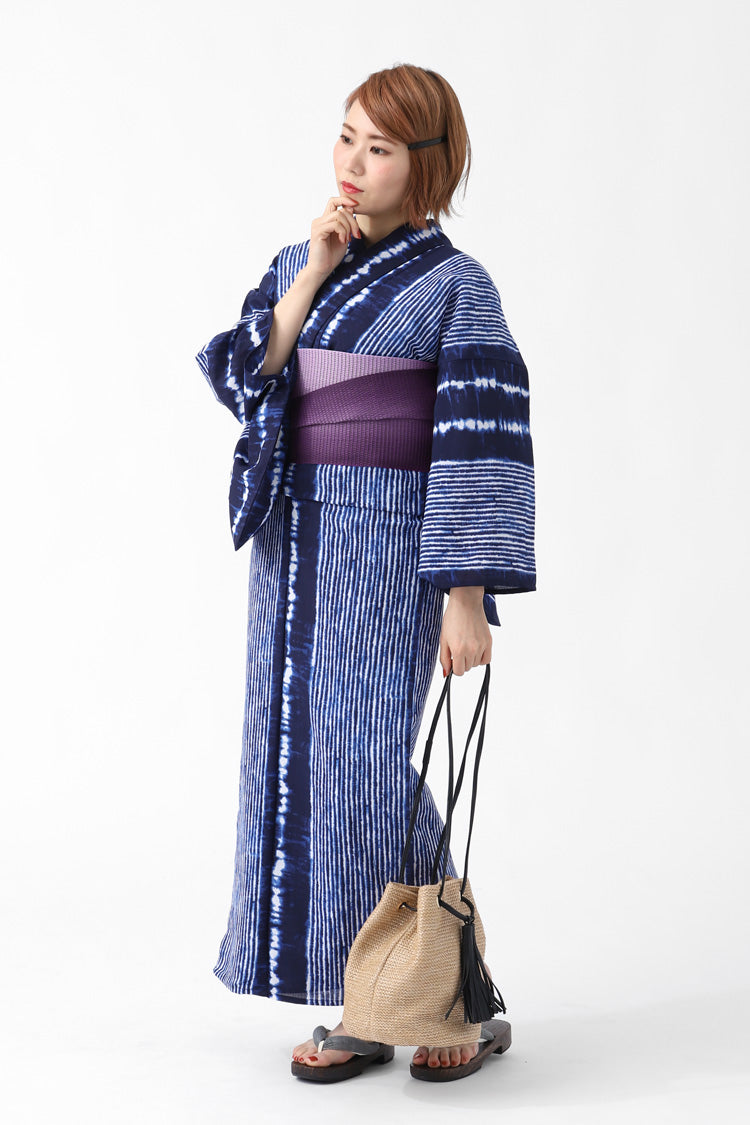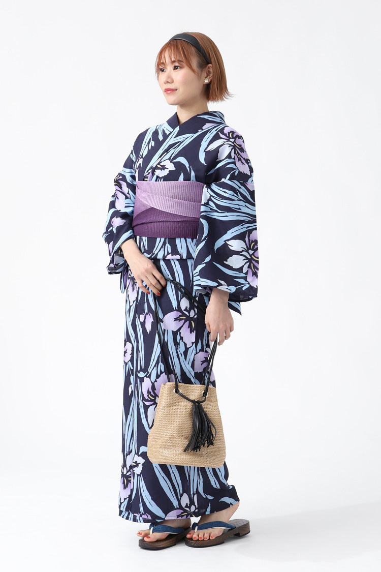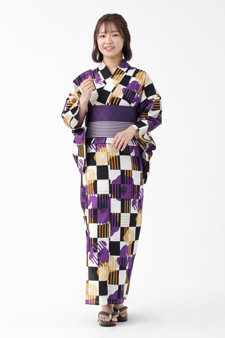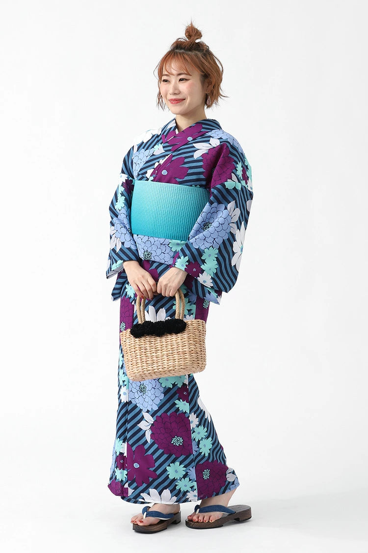 ▶【二部式浴衣】縦縞 椿 紫系 |