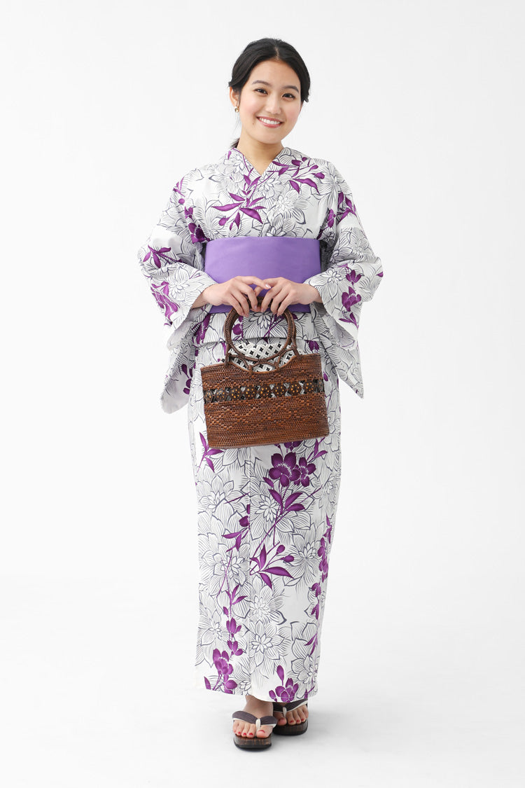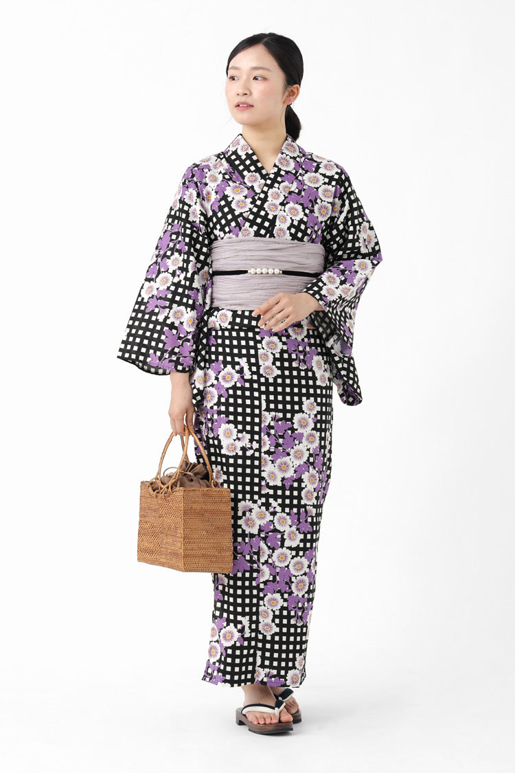 ▶【二部式浴衣】A 糸菊柄 パープル |