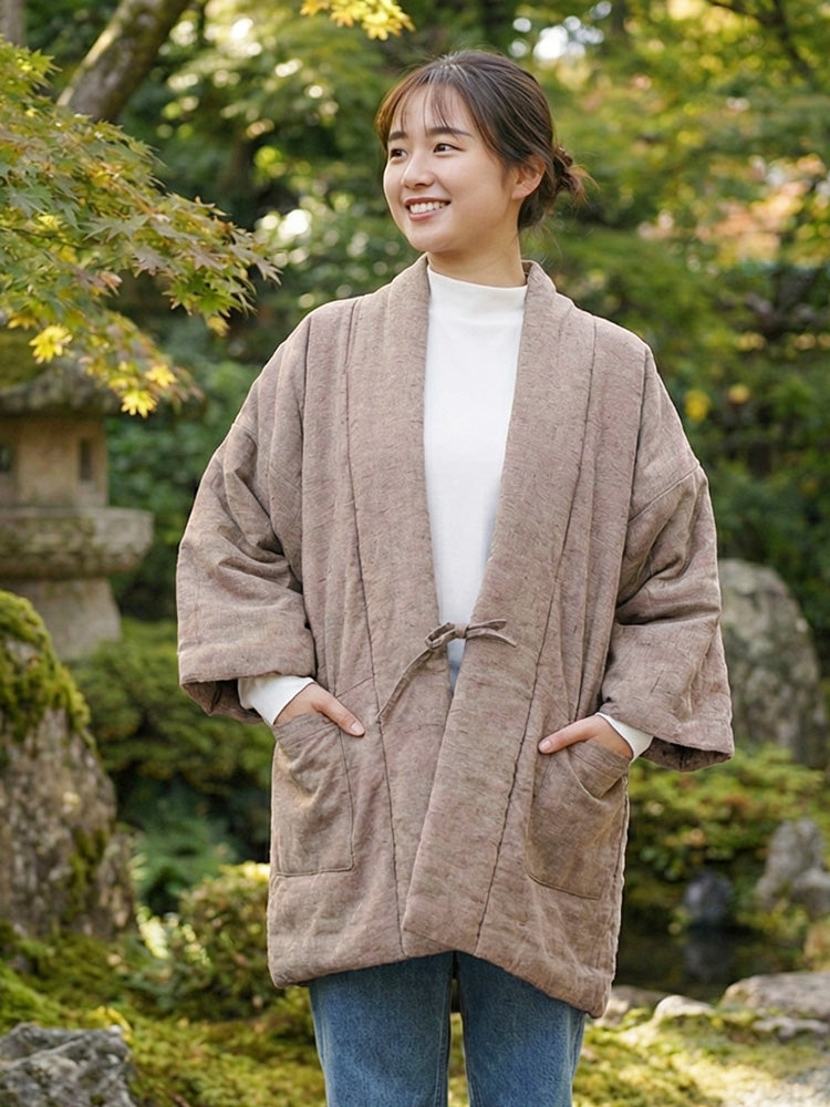 着る人の心がほぐれ、穏やかな時間を感じられる。サスティナブルな観点からも私たちはこの半纏をお勧めします。
