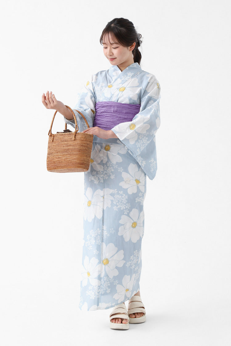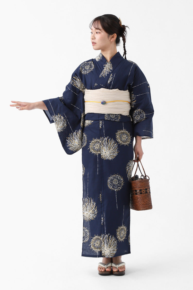 綿100%で肌触りの良いこちらの浴衣は、適度な吸水性なので、暑い夏の嫌な汗のべたつきなど、お出かけ時のストレスを軽減してくれます。
