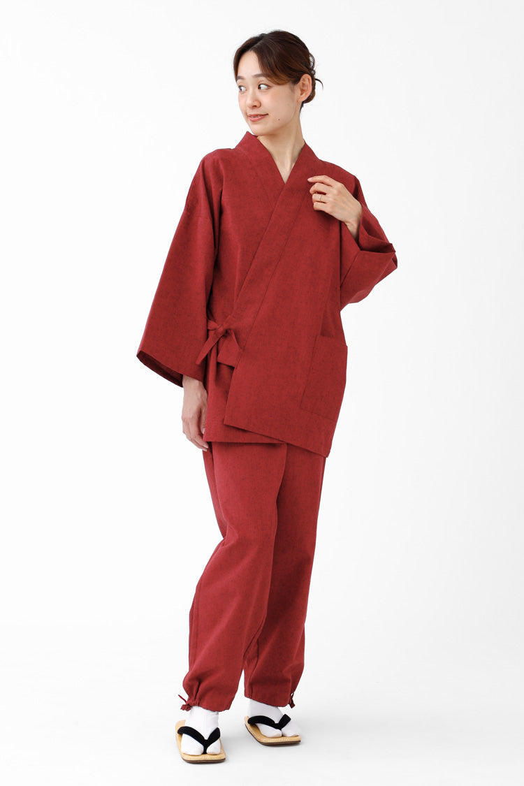 BOTAN レディース 久留米織 作務衣 日本生地 - M / 引きそろえ ワイン は入荷次第の発送となります。