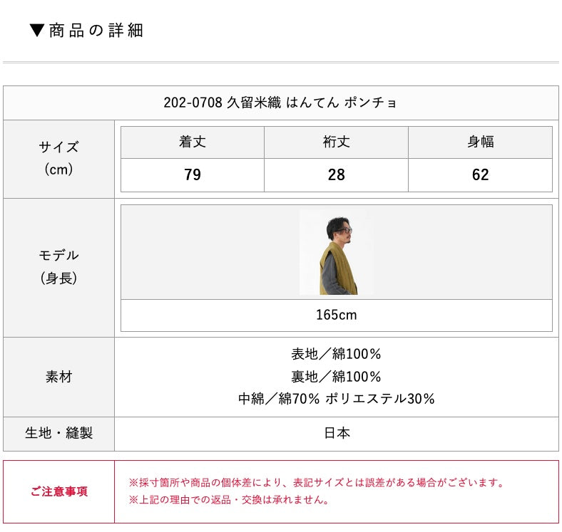 久留米織 半纏 はんてん ポンチョ 日本製 - Free / カラシ は入荷次第の発送となります。