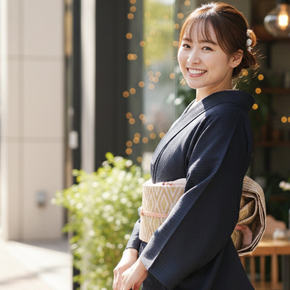 着物への憧れはあるけれど、少し特別なものに感じてしまう。手に取る前に多くの方が抱く気持ちです。日本が育んできた美しい文化を、もっと自然に、もっと心地よく、現代のライフスタイルに溶け込ませることはできないだろうか。 着物の直線設計は身体に寛容で、誰にでも似合う普遍性があります。