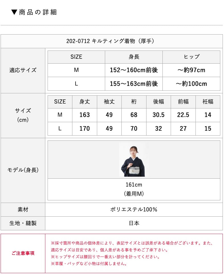 レディース キルティング着物 厚手